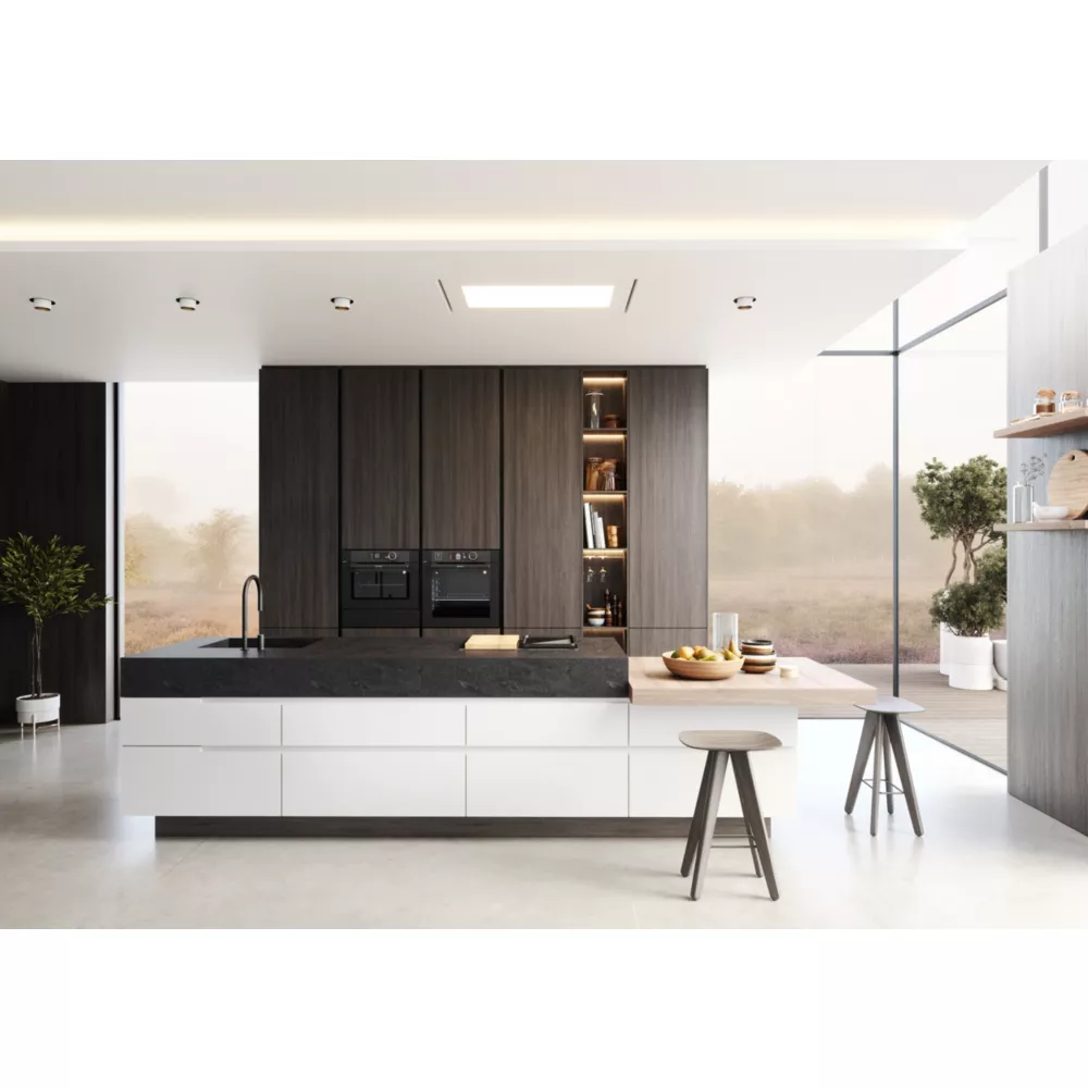 The built-in combined microwave DE DIETRICH DKC7340A, with its Absolut black aesthetic and sensitive keys, fits perfectly into modern kitchens. With a restored power of 1000W and a capacity of 40 liters, this MO-Combi microwave oven is a real ally for the preparation of your dishes. The enameled cavity, easy to clean, and the automatic lighting at the door opening add a touch of extra comfort. With its 10 cooking functions, including rotating heat and grill, this model meets all culinary needs, from quick thawing to car cooking, to ventilated grill for crispy results.