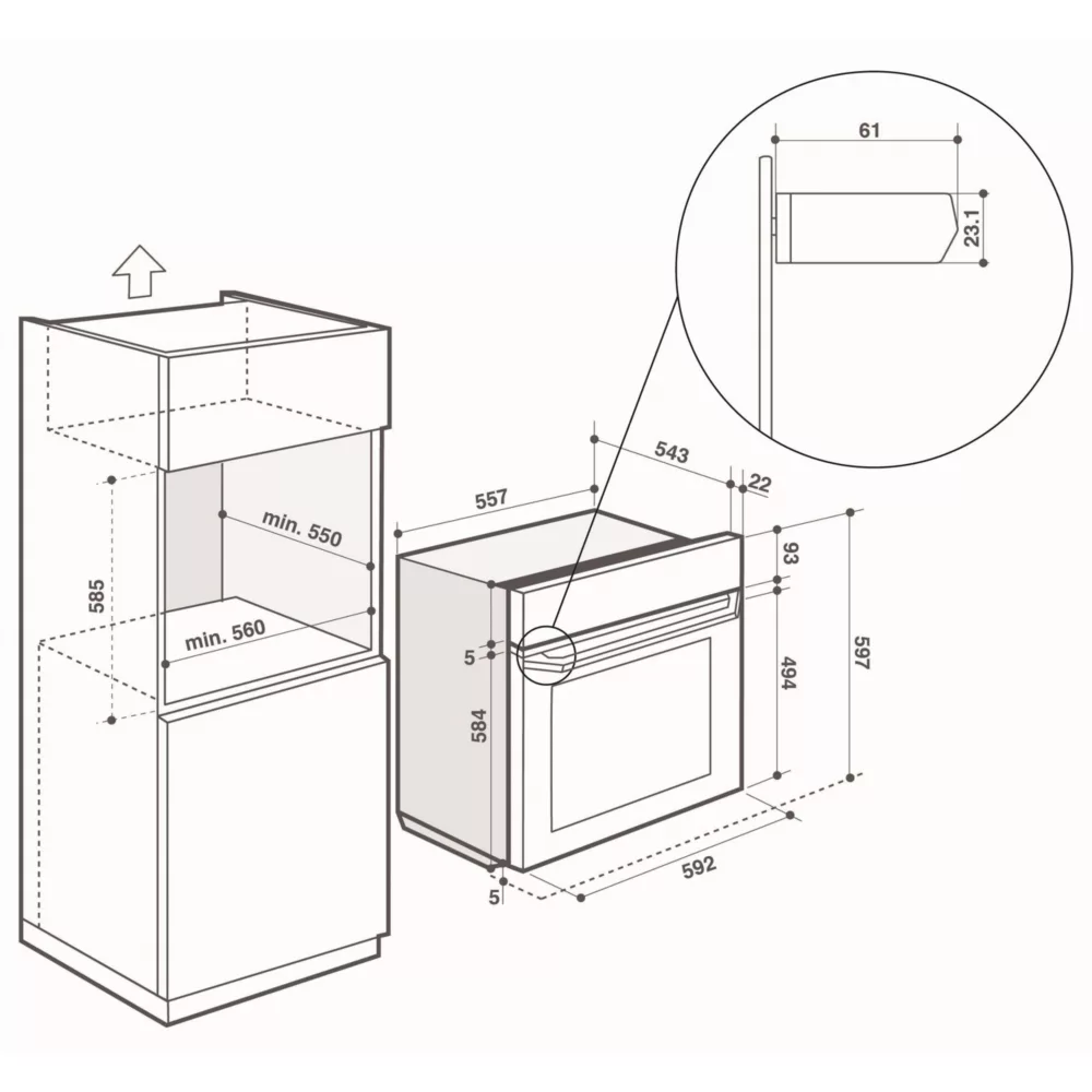 - Advantage of the pulsed rotating heat: the oven is equipped with a fan and a circular resistance located on the rear wall of the oven, for simultaneous cooking of different dishes on several levels