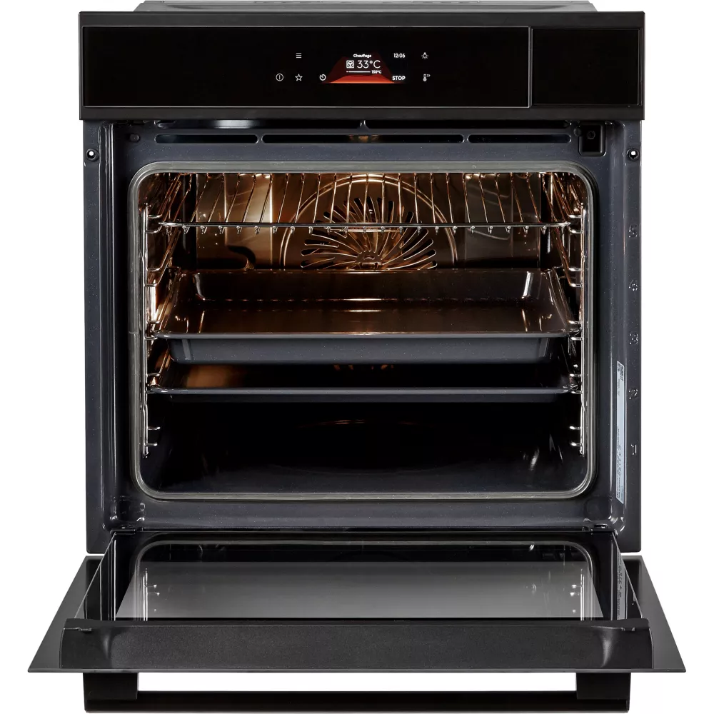 In addition, the ‘Velvet Closing’ assisted soft closure system and removable telescopic rails provide an extra touch of comfort. With 255 pre-programmed recipes and easy steam cleaning, this built-in oven is a real ally for kitchen enthusiasts.