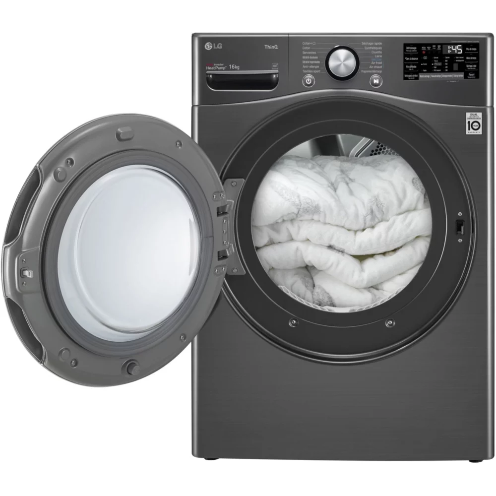 Dry up to 16 kg of laundry in the LG RH6P12BS tumble dryer! With its 211 L drum, its width of 70 cm combined with its depth of 77 cm, it will take care of the textiles of your entire family in a single cycle. Its large tank will also be formidable to dry your duvets, your bed sheets or your curtains in no time.