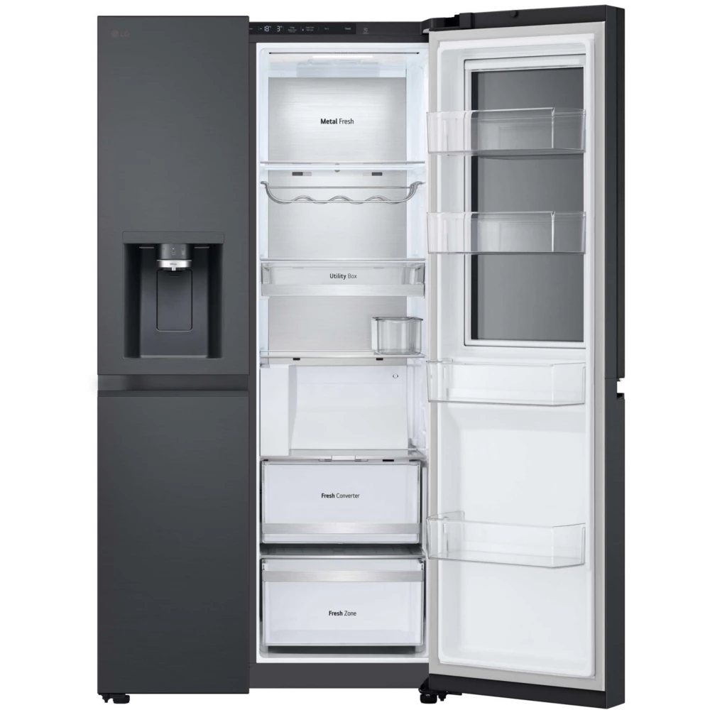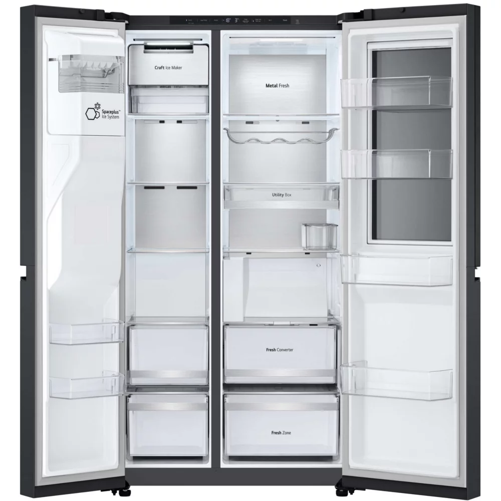 The LG GSXE90EVDD InstaView is distinguished by its advanced features and a large capacity of 628 litres, providing optimal storage space for all your food. With InstaView Door-in-DoorTM, quickly access your frequently used products without opening the main door, reducing cold loss. In addition, Door CoolingTM technology ensures a seamless distribution of the cold, keeping your food fresh longer. The presence of the Craft IceTM Ice Factory enriches the user experience by offering slow-molten round ice cubes, ideal for lovers of refined beverages.