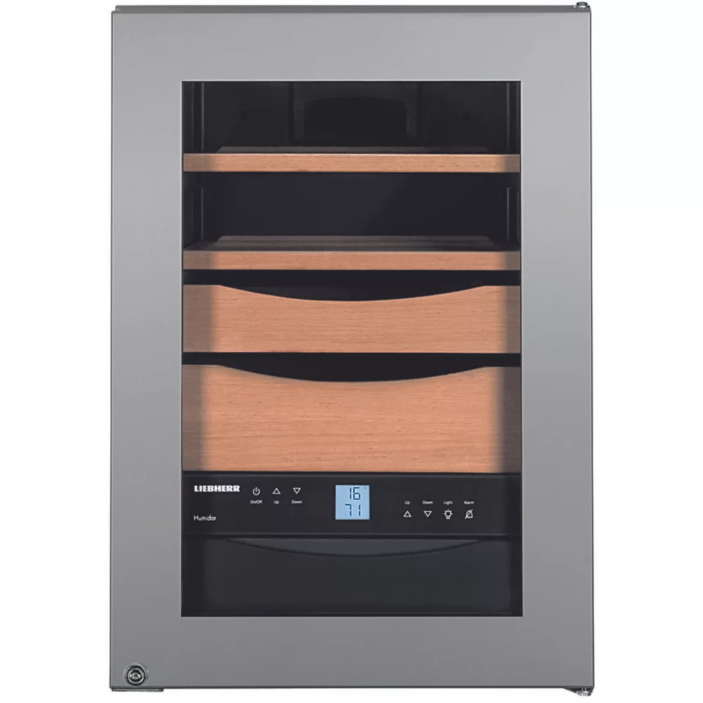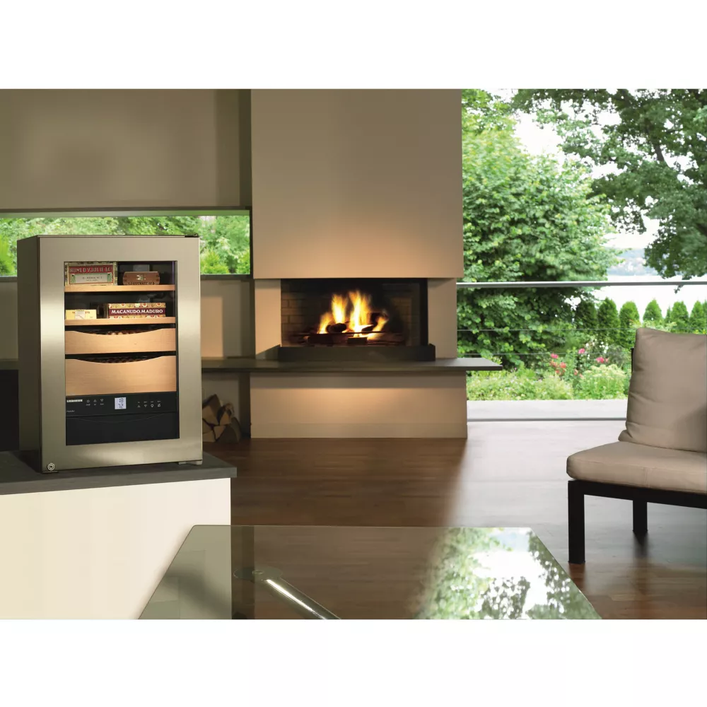 Door type: glass, allowing easy viewing of the bottles without opening the door, which reduces air circulation in the cellar and therefore temperature fluctuations. UV protection safeguards the contents.
