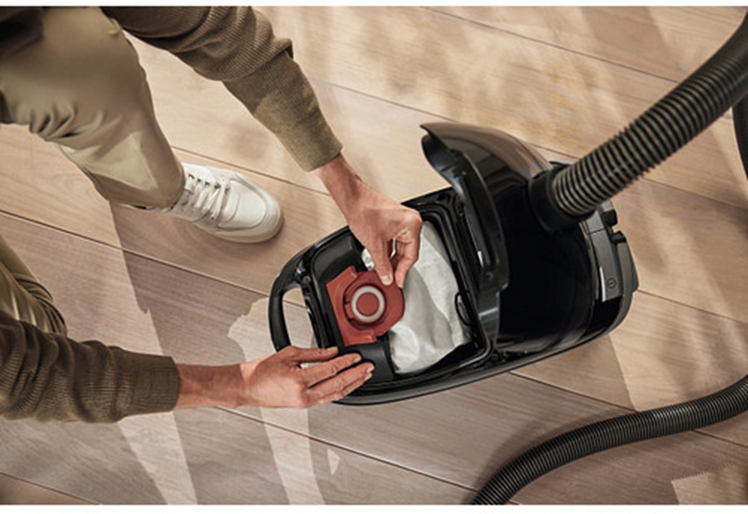 It guarantees optimal suction on all types of surfaces, from thick carpets to delicate hard floors, thanks to its PowerLine motor, with a power of 550 Watts, and its AiiFloor brush which is suitable for carpets, parquet floors and tiles.