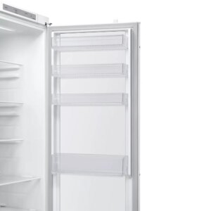 The SAMSUNG BRR29600EWW/EF is a fully integrated, single-door refrigerator with a net capacity of 289L, ideal for families seeking optimal storage space. Equipped with a Total No Frost system, it ensures a consistent and even temperature, preventing frost buildup and thus guaranteeing better food preservation. Its LED lighting provides perfect visibility inside, while the touch controls allow for easy management of settings. This refrigerator's E energy rating reflects its efficiency, reducing both its environmental impact and energy costs.