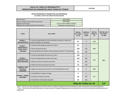 - Availability of spare parts (supplier data): For 14 years, from the end date of manufacture